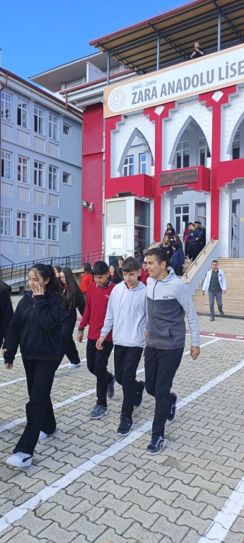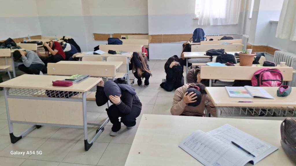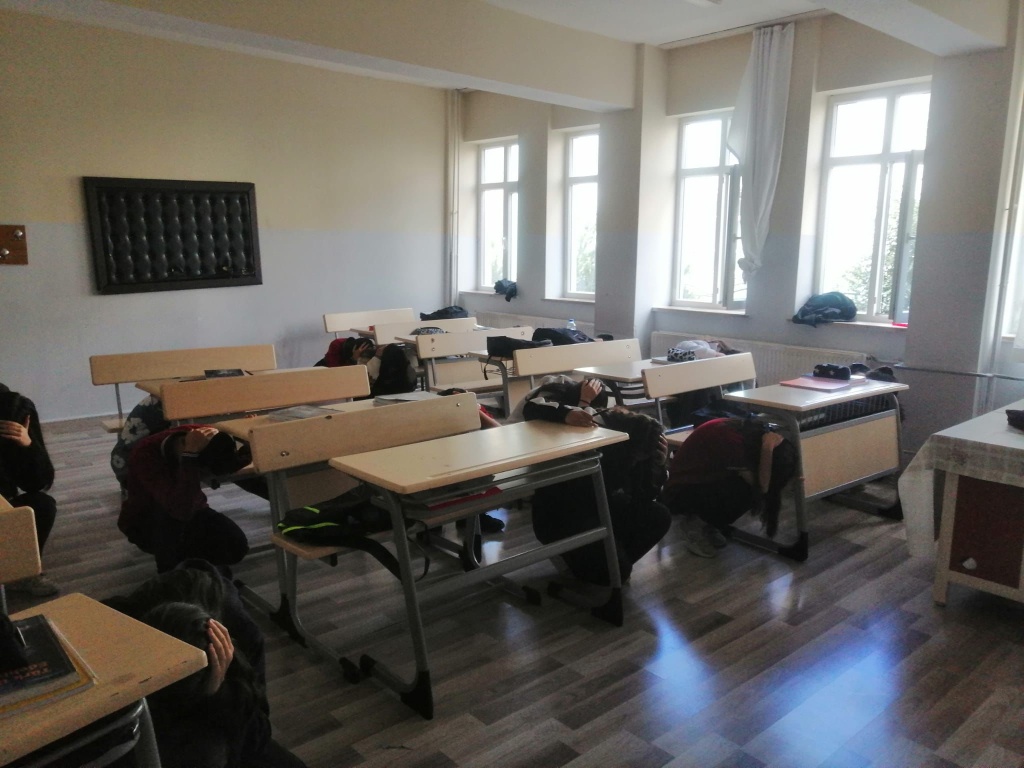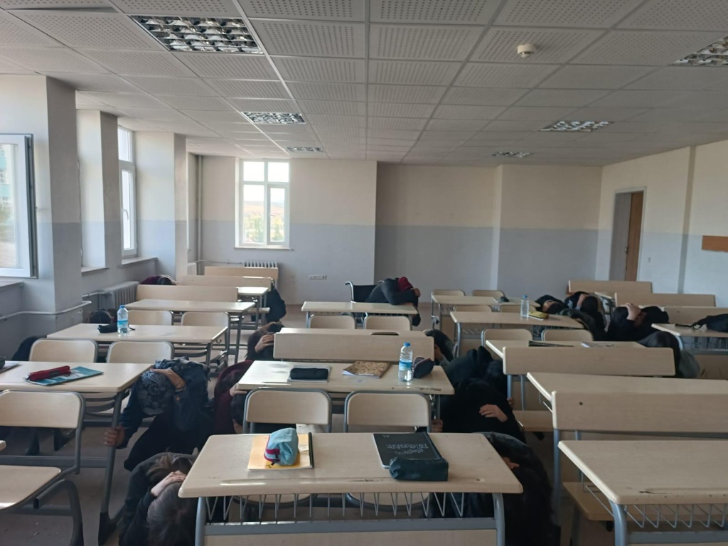 13 Ekim Dünya Afet Risklerinin Azaltılması Günü dolayısıyla, okulumuzda deprem tatbikatı yapıldı. Afet Hazırlık Kulübü Danışman Öğretmenimiz Mehmet Yıldız öncülüğünde eş zamanlı olarak tüm sınıflarda afetlerle ilgili eğitim videoları izlendi ve sirenle birlikte önce sınıflarda "ÇÖK-KAPAN-TUTUN" yapıldı. Daha sonra da öğrenciler okuldan güvenli bir şekilde tahliye edildi. Tatbikatta emeği geçen herkese teşekkür ederiz.