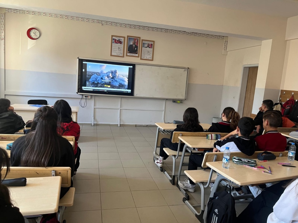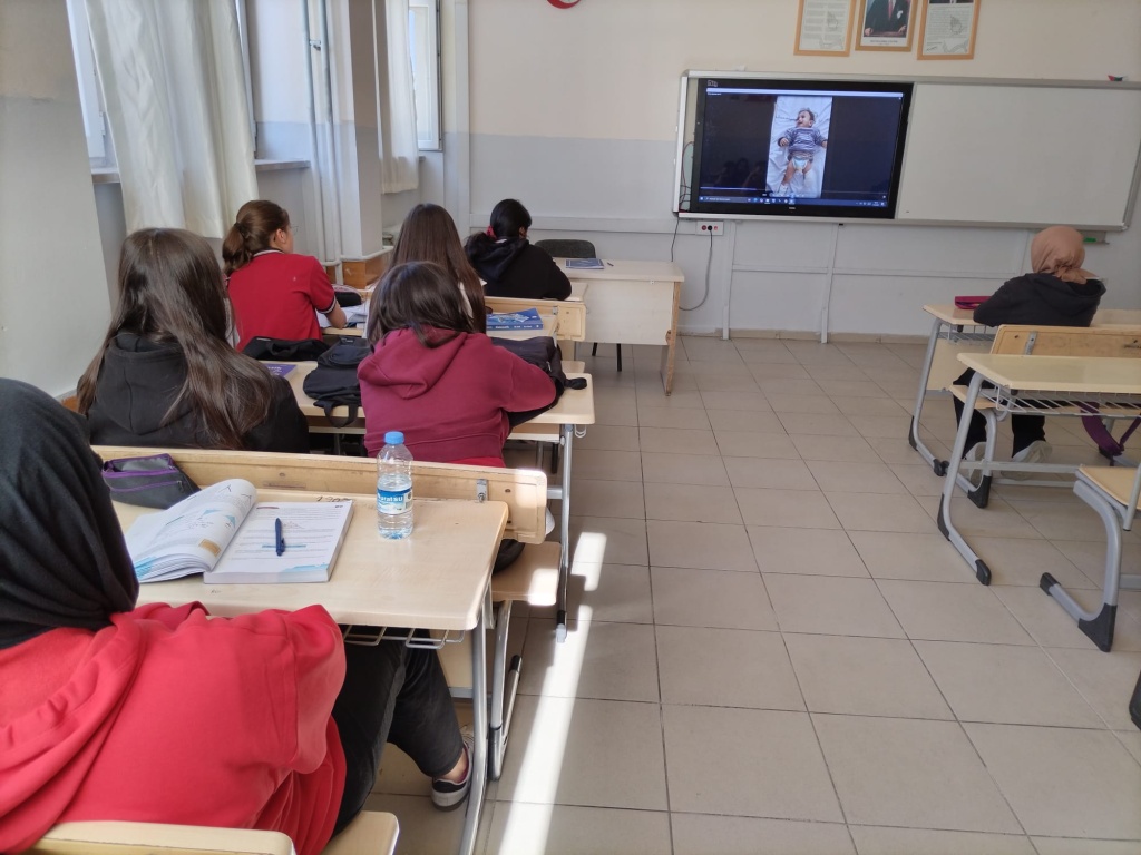 Filistin'de yaşanan zulme karşı bilinç oluşturmak için öğrencilerimize soykırımın had safhaya çıktığı 7 Ekim 2023'ün 2. yılında sunumlar yaparak katil israile lanet okuduk.
