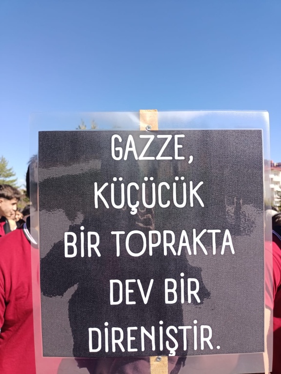 Saygı duruşu ve İstiklal Marşı'nın ardından Kur'an-ı Kerim Tilaveti ile devam eden programda, günün anlam ve önemini belirten konuşmalar yapıldı, şiirler okundu. Başta Filistin ve Gazze olmak üzere soykırıma uğrayan tüm müslümanlar için dualar edildi. Akabinde ise sloganlar ve ezgiler eşliğinde yürüyüş tamamlandı. Biz de Zara Anadolu Lisesi olarak bu soykırımın bir an önce bitmesini ve mazlum coğrafyalara barışın hâkim olmasını diliyoruz.